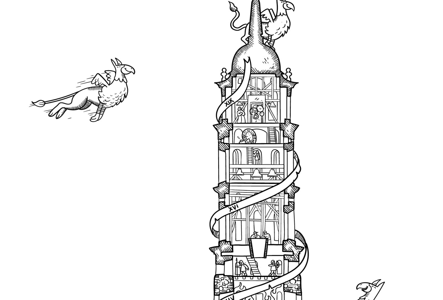 Šioje parodoje siekiame priminti svarbiausius mūsų miesto, valstybės, Bažnyčios įvykius ir asmenis – visa tai yra atskaitos taškai norint perprasti mūsų sostinės kaitą. Kviečiame tyrinėti parodą, stalčiukuose paslėptas, ant stiklų per visą bokšto aukštį nutupdytas istorijas. Baldo stalviršyje perskaitysite ne tik Vilniaus, bet ir Europos įvykių laiko juostą. Tikimės, kad taip iš kitų kraštų atvykę mūsų miesto lankytojai galės aptikti suprantamas paraleles, Vilniaus įvykius atpažinti kaip neatsiejamus nuo Vakarų kultūros procesų. Kopdami aukštyn, grožėkitės miestu, atraskite varpinę, atpinkite čia susivijusią Vilniaus laiko juostą.