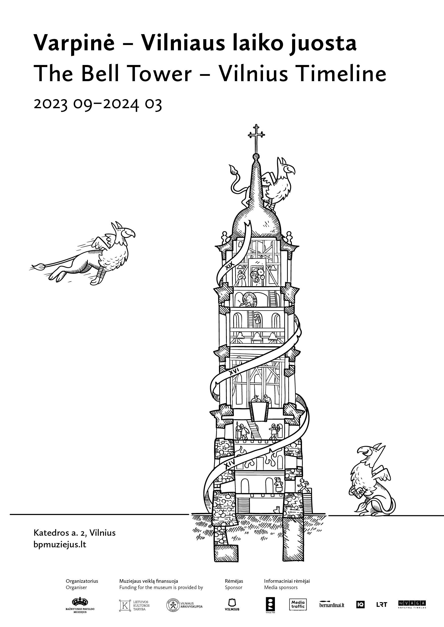 Šioje parodoje siekiame priminti svarbiausius mūsų miesto, valstybės, Bažnyčios įvykius ir asmenis – visa tai yra atskaitos taškai norint perprasti mūsų sostinės kaitą. Kviečiame tyrinėti parodą, stalčiukuose paslėptas, ant stiklų per visą bokšto aukštį nutupdytas istorijas. Baldo stalviršyje perskaitysite ne tik Vilniaus, bet ir Europos įvykių laiko juostą. Tikimės, kad taip iš kitų kraštų atvykę mūsų miesto lankytojai galės aptikti suprantamas paraleles, Vilniaus įvykius atpažinti kaip neatsiejamus nuo Vakarų kultūros procesų. Kopdami aukštyn, grožėkitės miestu, atraskite varpinę, atpinkite čia susivijusią Vilniaus laiko juostą.