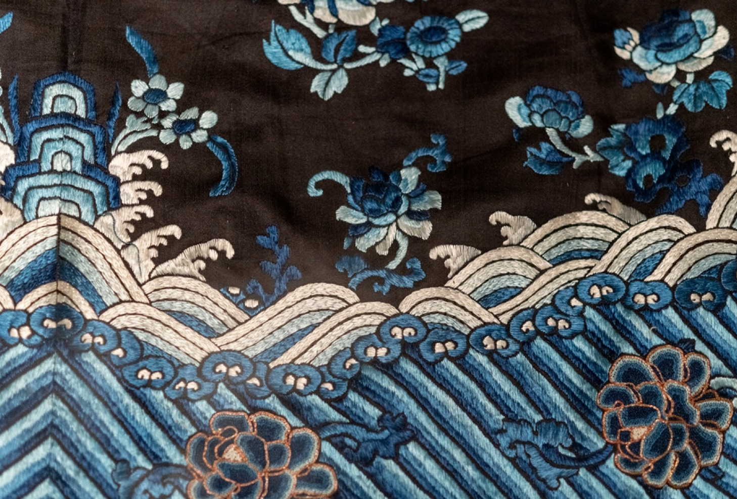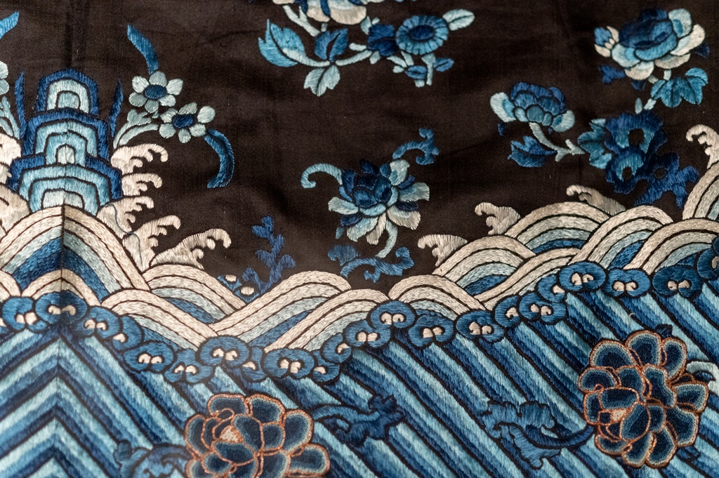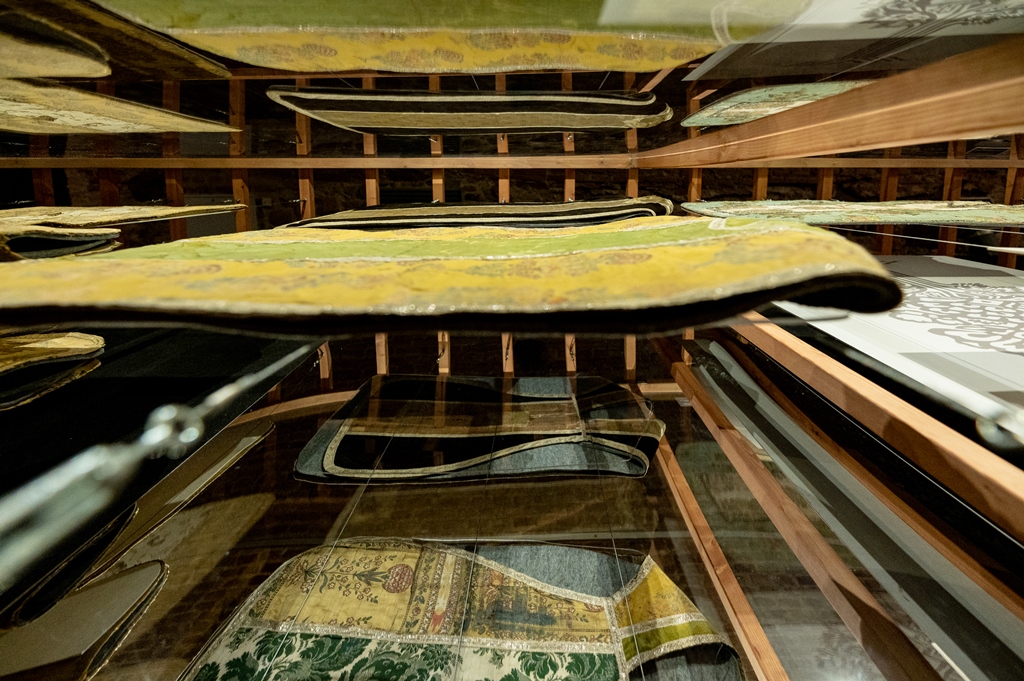 Jau XVII–XVIII a. nusistovėjus prekybiniams jūros keliams, Europoje ir Lietuvoje kilo kiniškų dirbinių populiarumo ir mados banga. Kiniškos kilmės audiniai ir siuviniai Lietuvos bažnytiniuose drabužiuose nesiekia ankstyvų laikų, dauguma datuojami XIX–XX a. pr., tačiau yra unikalūs Lietuvoje ir atskleidžia ne vieną kinų tekstilės tradiciją, o dėl daugybės simbolinių vaizdų pristato visą šios senos kultūros elementų spektrą. Vosiūnų bažnyčios arnotas pasiūtas iš kesi tipo audinio, Alantos bažnyčios arnoto damastai su kiniškais simboliais, Riešės bažnyčios ir Vilniaus katedros arnotai iš siuvinėtų kiniškų drabužių, Turgelių arnotas su auksu siuvinėtais drakonais – nuostabi Rytų kolekcija iš Lietuvos bažnyčių. Parodoje pristatomi pavyzdžiai europietiško šinuazerijos stiliaus, kurio susiformavimui sąlygas sudarė Oriento, o ypač Kinijos, taikomoji dailė ir architektūra.
