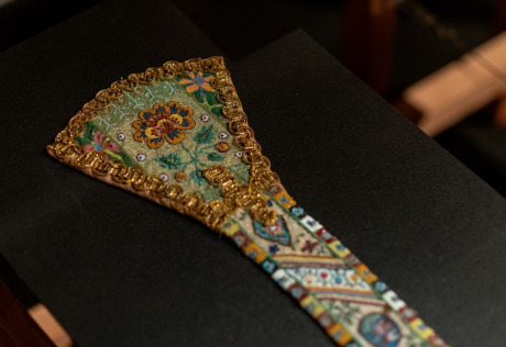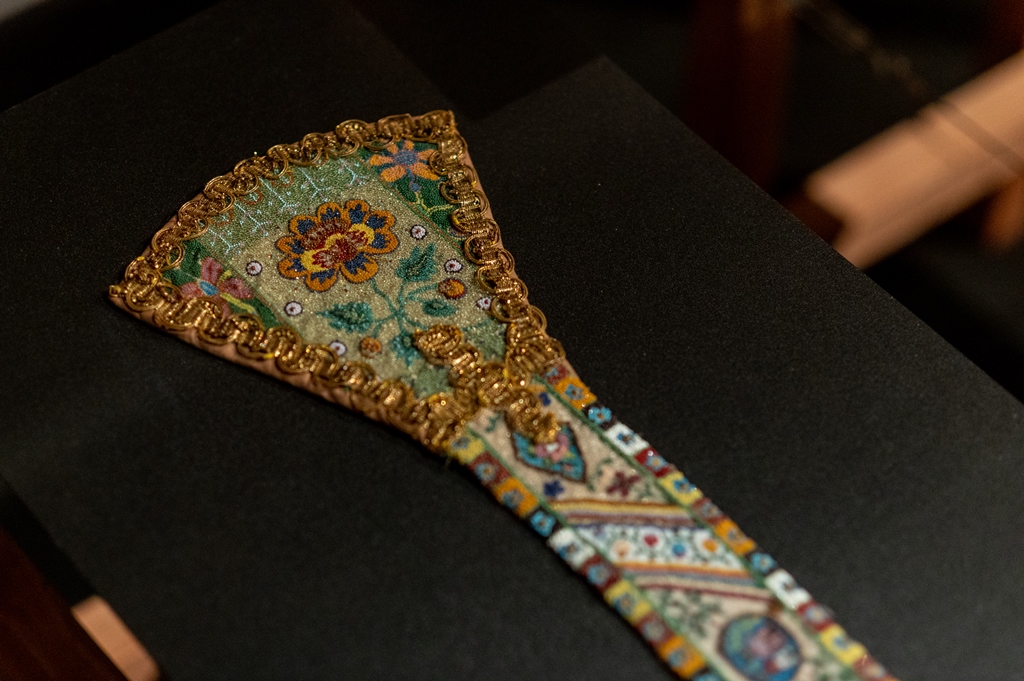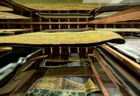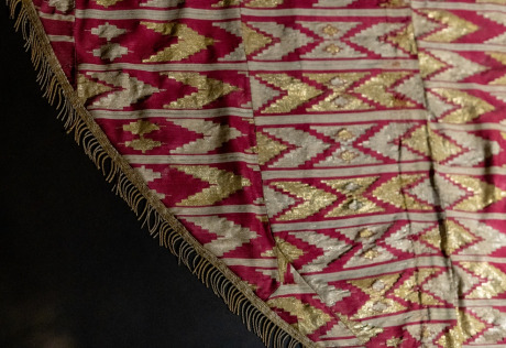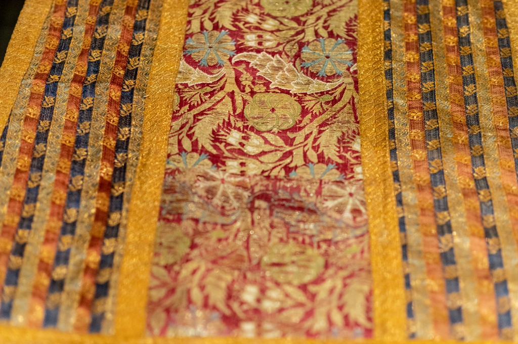 Parodoje pristatyti unikalūs Oriento kraštų audiniai bei siuvinėti dirbiniai, išlikę Lietuvos liturginėje tekstilėje. Tai jau trečia muziejaus, saugančio didžiausią ir vertingiausią šalyje senosios tekstilės rinkinį, liturginės tekstilės paroda (2013 m. „Šilkas ir auksas“, 2017 m. „Siuvinėtas dangus“). Eksponuoti 32 XVI–XX a. Osmanų imperijoje, Safavidų Persijoje, Mogolų Indijoje, Vidurinėje Azijoje sukurti audiniai ir siuviniai. Per šias šalis nuo II a. pr. Kr. – iki XV a. iš Kinijos driekėsi Šilko kelias, padėjęs pamatus gilioms šilkinių audinių gamybos tradicijoms. Kinijos tekstilės bruožus atskleidė atskirai pristatyti unikalūs, iš šio krašto audinių pasiūti bažnytiniai drabužiai. Parodoje buvo galima išvysti vieną iš rečiausių audinių Europoje – XVII a. indišką aksomą, pasigrožėti tikrais klasikinio Osmanų rūmų stiliaus brokatais. Vienas keisčiausių parodos eksponatų – katalikų liturginis drabužis arnotas, kurio kryžius puoštas kiniškais drakonais. Keli XVIII a. šinuazerijos stiliaus audiniai praplėtė pasakojimą apie Rytų poveikį Europos menui. Parodą papildė padidinti audinių raštų piešiniai, leidžiantys detaliau pamatyti atskirus ornamentų motyvus, atskleisti jų simbolines prasmes. Dėl unikalių raštų, prabangių medžiagų, aukštos technologinės kokybės Oriento tekstilė tapo viena labiausiai vertinamų taikomojo meno rūšių Europoje. Parodos eksponatai atkeliavo iš penkių muziejų, devynių bažnyčių ir dviejų privačių rinkinių.