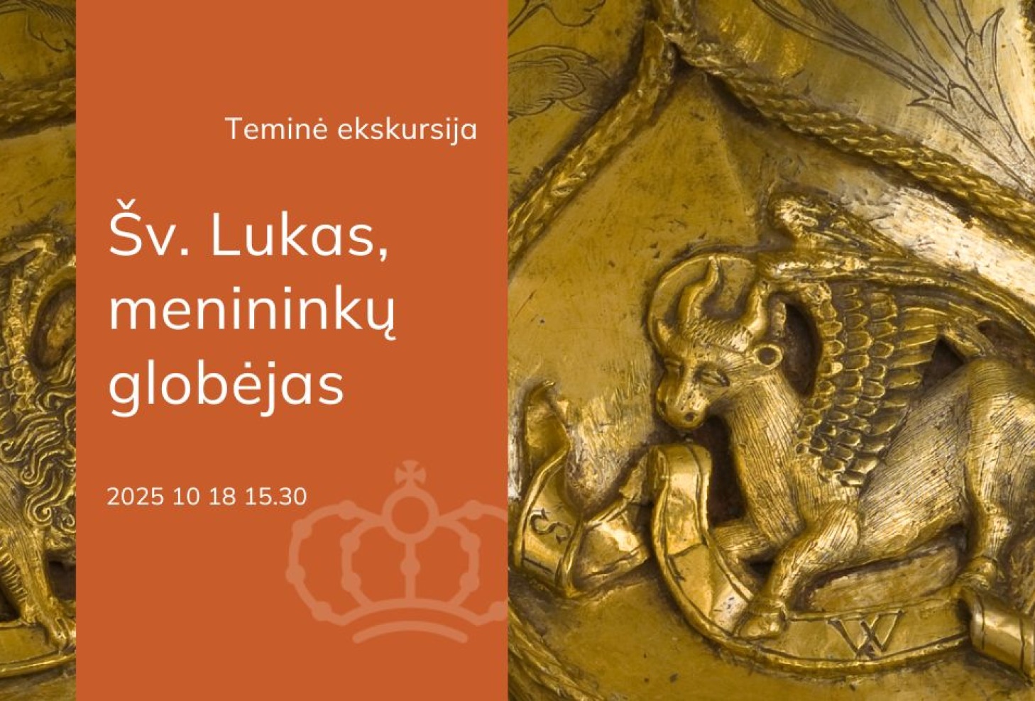 Šią dieną kviečiame dalyvauti teminėje ekskursijoje ir apžiūrėti vertybes su šv. Luko evangelisto atvaizdais. Be to, atskleisime, kas siejo su šv. Luku tapytojus Peterį Paulių Rubensą ir Simoną Čechavičių, kurių darbus, lydimi gidės, lankytojai taip pat išvys muziejaus erdvėse.