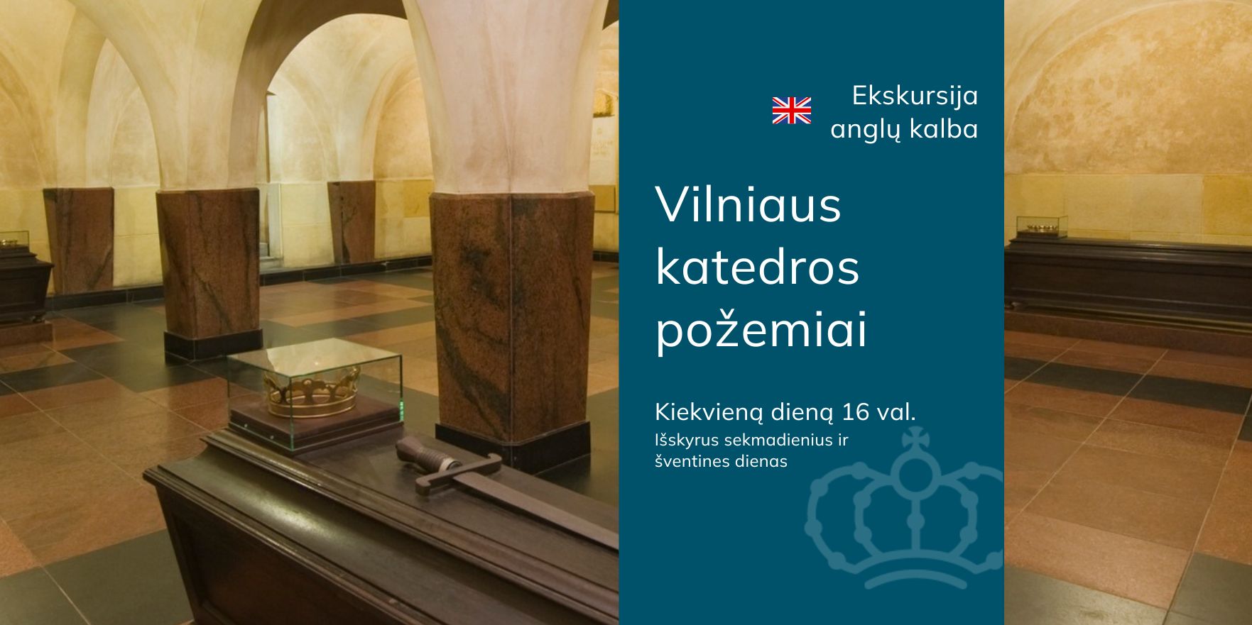 Kviečiame apžiūrėti Vilniaus katedros požemius. Tai nematoma pastato dalis, pristatanti šventovės, stovinčios vienoje seniausiai gyvenamų Vilniaus vietų, istoriją, pastato kaitą, čia palaidotus Lietuvos valstybei ir Bažnyčiai nusipelniusius asmenis. Kriptose ir koridoriuose įrengta ekspozicija supažindina su laidojimo tradicijomis, archeologiniais radiniais, Karališkuoju mauzoliejumi.