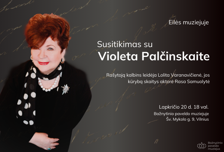 Trečiadienį, lapkričio 20 d., 18 val. kviečiame į penktą – kiek kitokį negu praėjusiejį! – ciklo „Eilės muziejuje“ vakarą. Rašytoją – dramaturgę, poetę, scenaristę ir vertėją, – 2023 m. Nacionalinės kultūros ir meno premijos laureatę Violetą Palčinskaitę kalbins jos tekstų leidėja Lolita Varanavičienė.