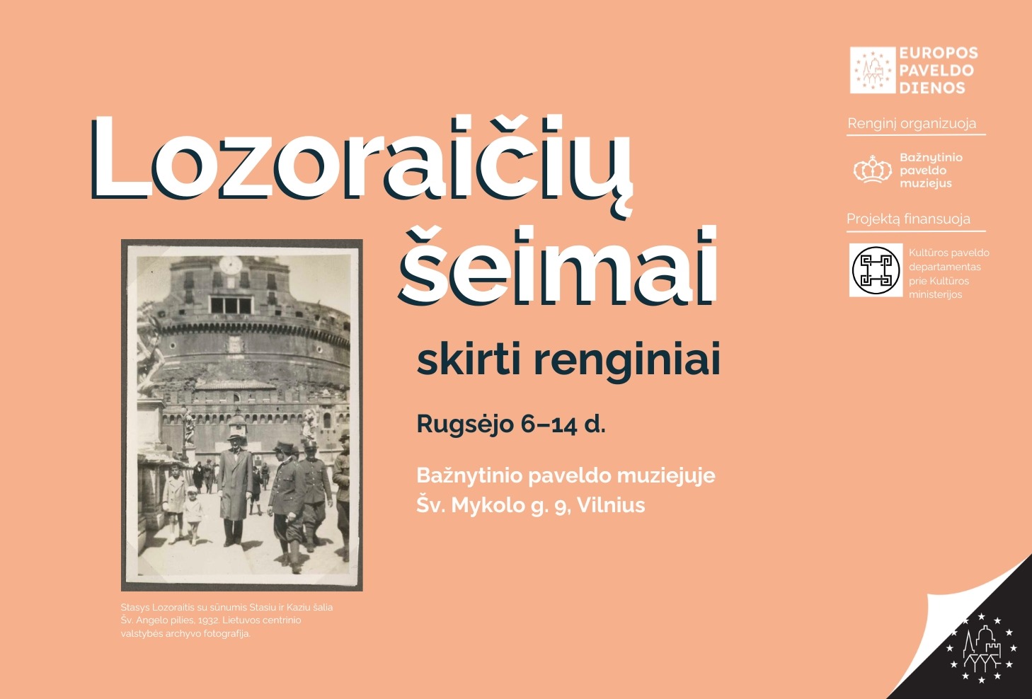 Šiais metais rugsėjo 6–15 d. vykstančias Europos paveldo dienas Lietuvoje vienija tema „Kultūros paveldas: ryšiai, įtakos, keliai“. Bažnytinio paveldo muziejuje organizuojami Lozoraičių šeimai skirti renginiai yra ryški šios temos iliustracija.