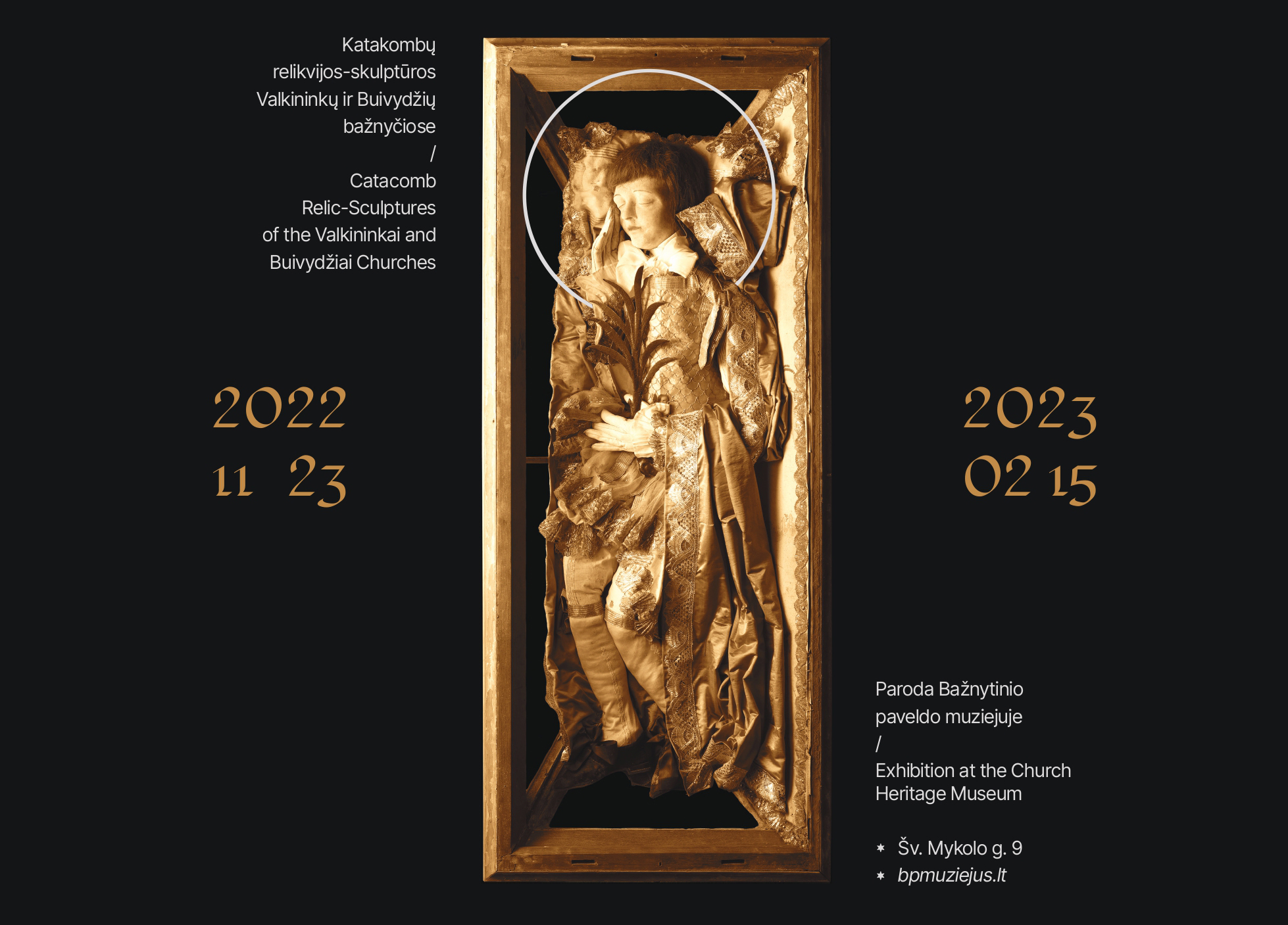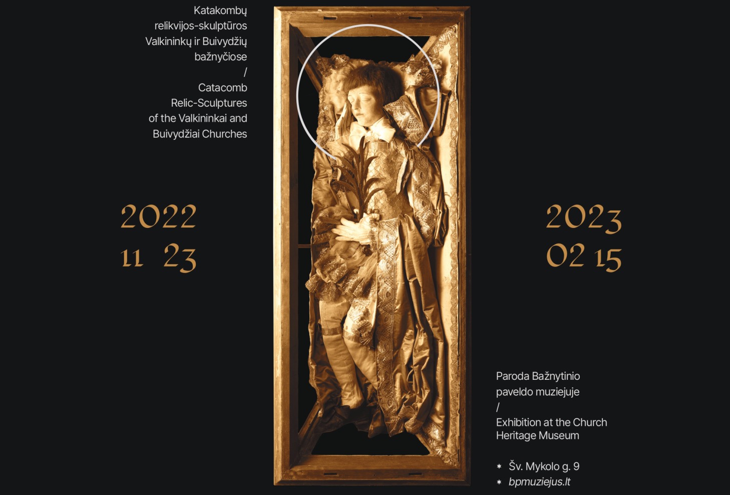 Bažnytinio paveldo muziejuje (Šv. Mykolo g. 9, Vilnius) vyks parodos „Corpisanti. Katakombų relikvijos-skulptūros Valkininkų ir Buivydžių bažnyčiose“ atidarymas.
