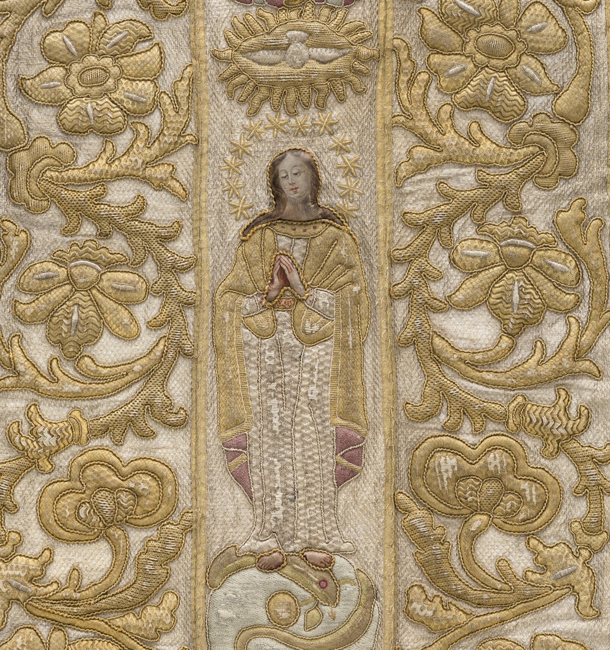 Barokines XVII a. siuvinėjimo tendencijas geriausiai atspindi aukso spalvos arnotas, puoštas Nekaltojo Prasidėjimo Mergelės Marijos atvaizdu, bei Mergelės Marijos monograma dekoruotas altoriaus priekinės dalies aptaisas – vyšininio atspalvio antepediumas. Antepediumas puošė Šv. arkangelo Mykolo bažnyčios šoninį altorių. Šios reljefinės, vien metalo siūlais išsiuvinėtos kompozicijos dvelkia barokine prabanga ir didingumu. Jos siejamos su bernardinių vienuolyne veikusiomis siuvinėjimo dirbtuvėmis.
