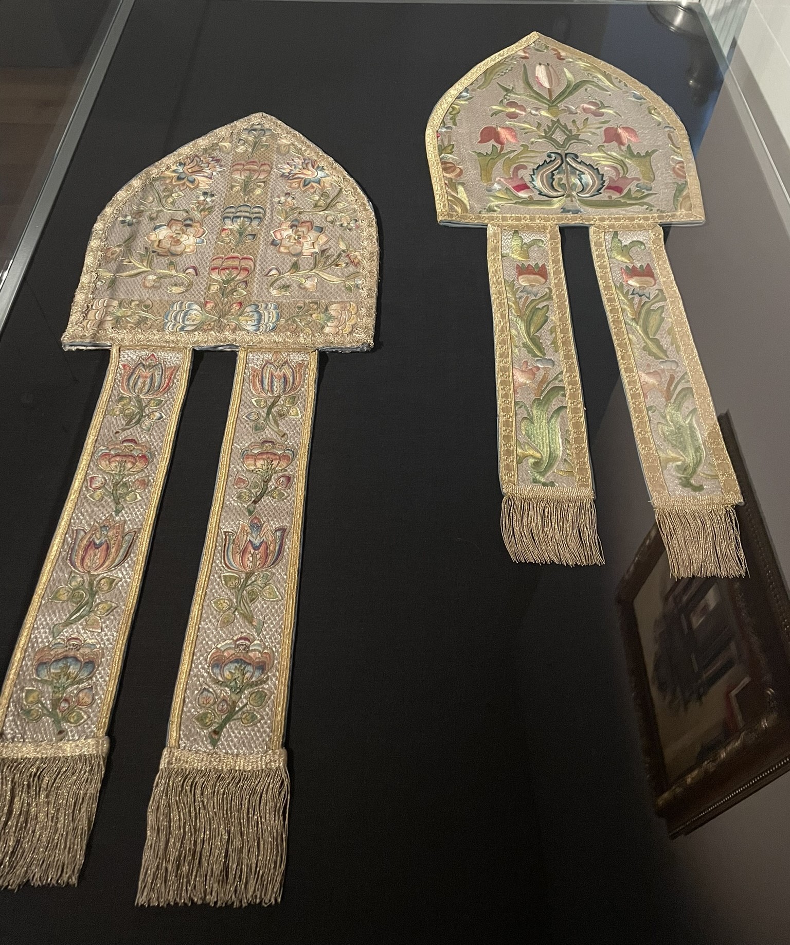 Ekspozicijoje atrasite įvairių gėlių žiedų motyvais siuvinėtų liturginių rūbų, kurių dekoro elementai mena dvi – baroko ir rokoko – epochas.
